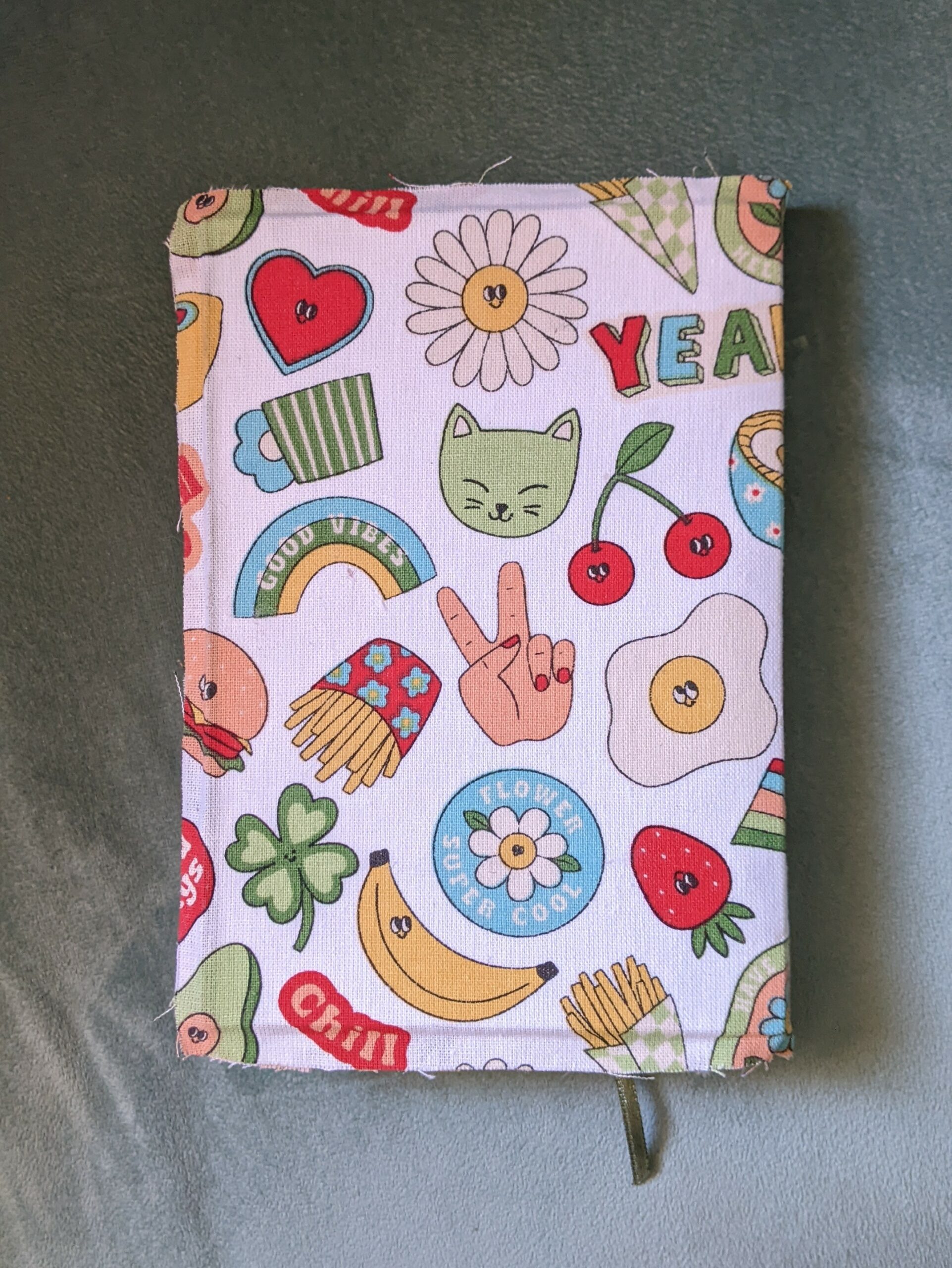 Carnet de croquis ou de notes format A6 fait main, couverture rigide recouverte de tissu.